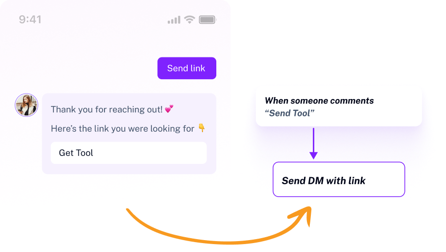 Automatically reply to comments and DMs with relevant messages and links. Capture attention instantly and guide users to the next action without relying on bio links.